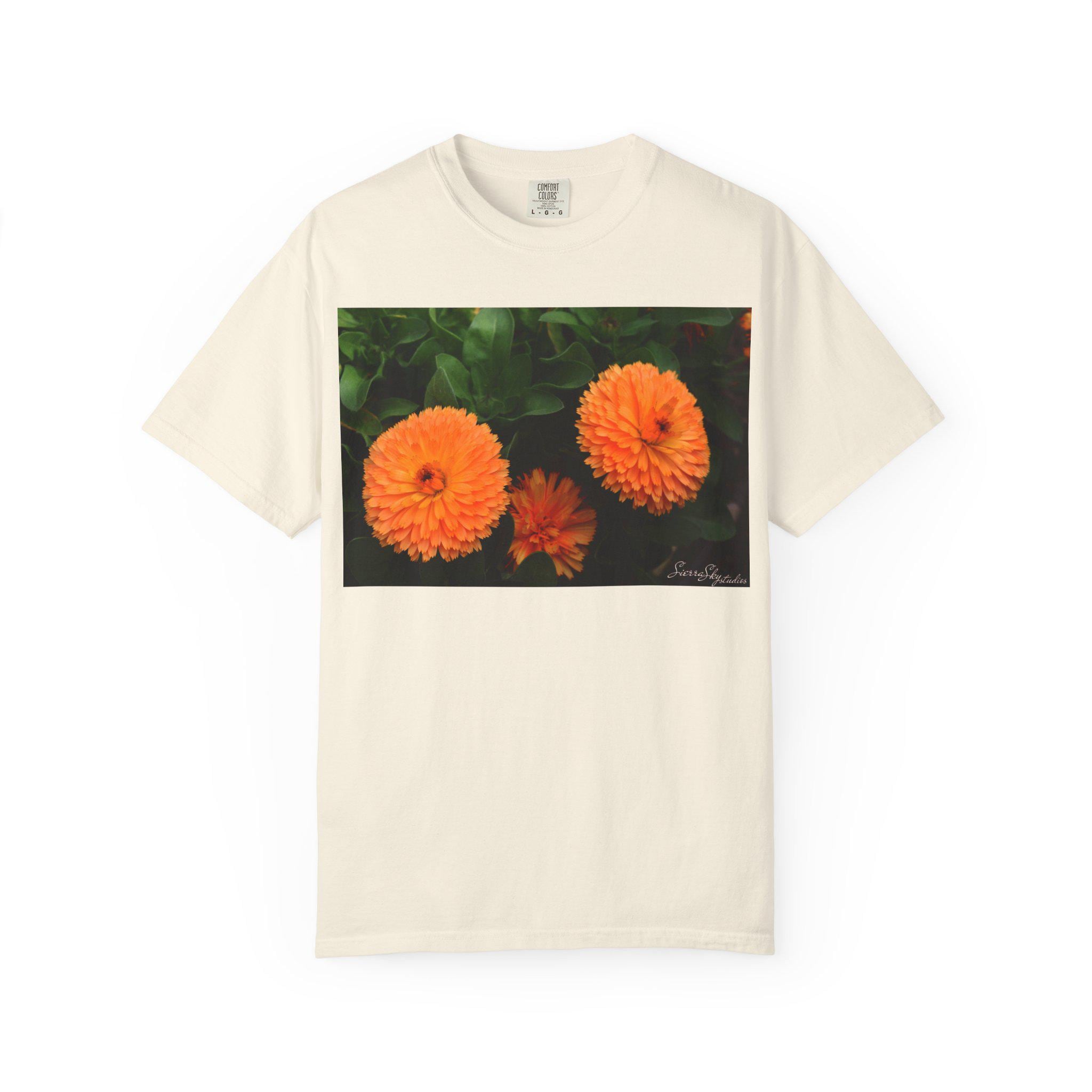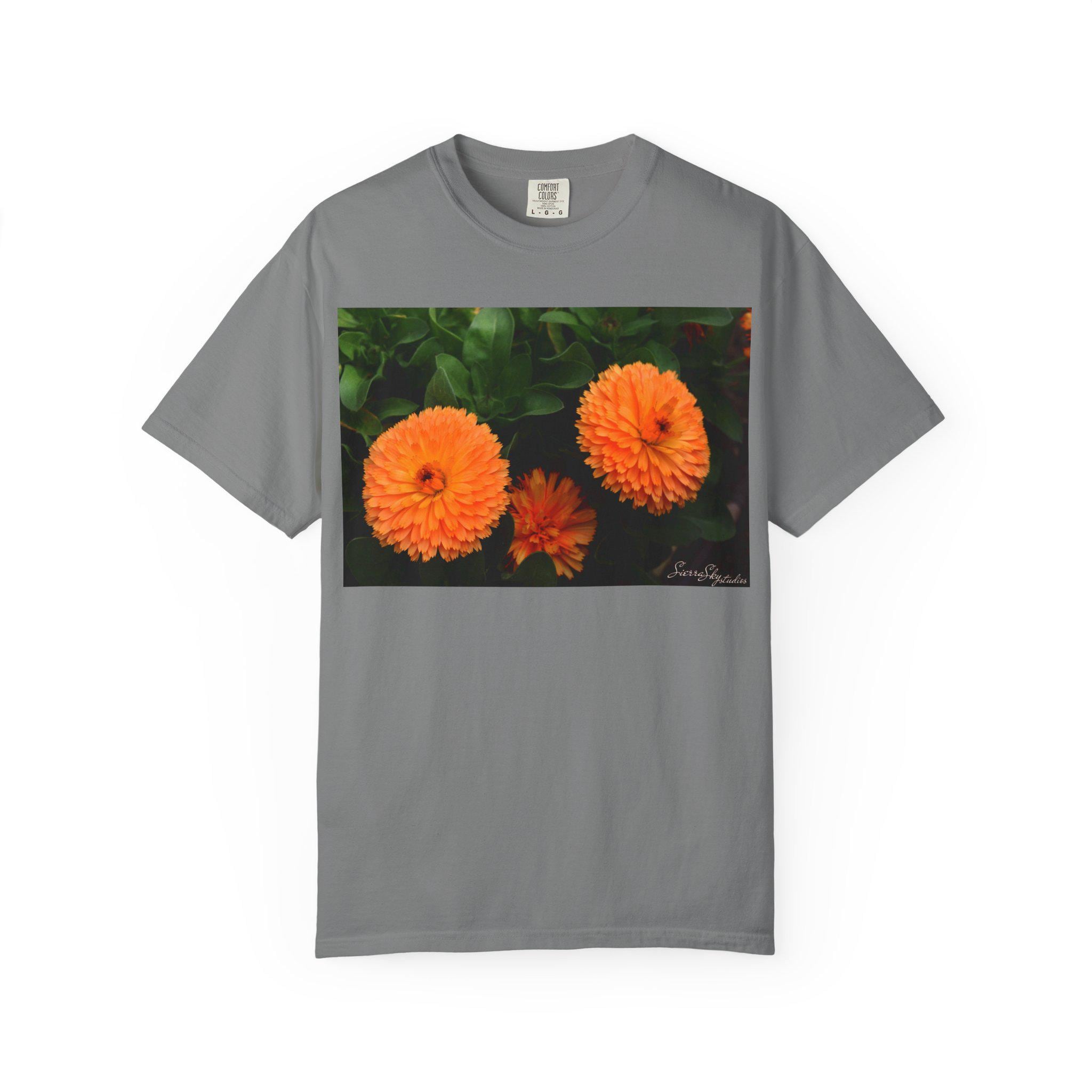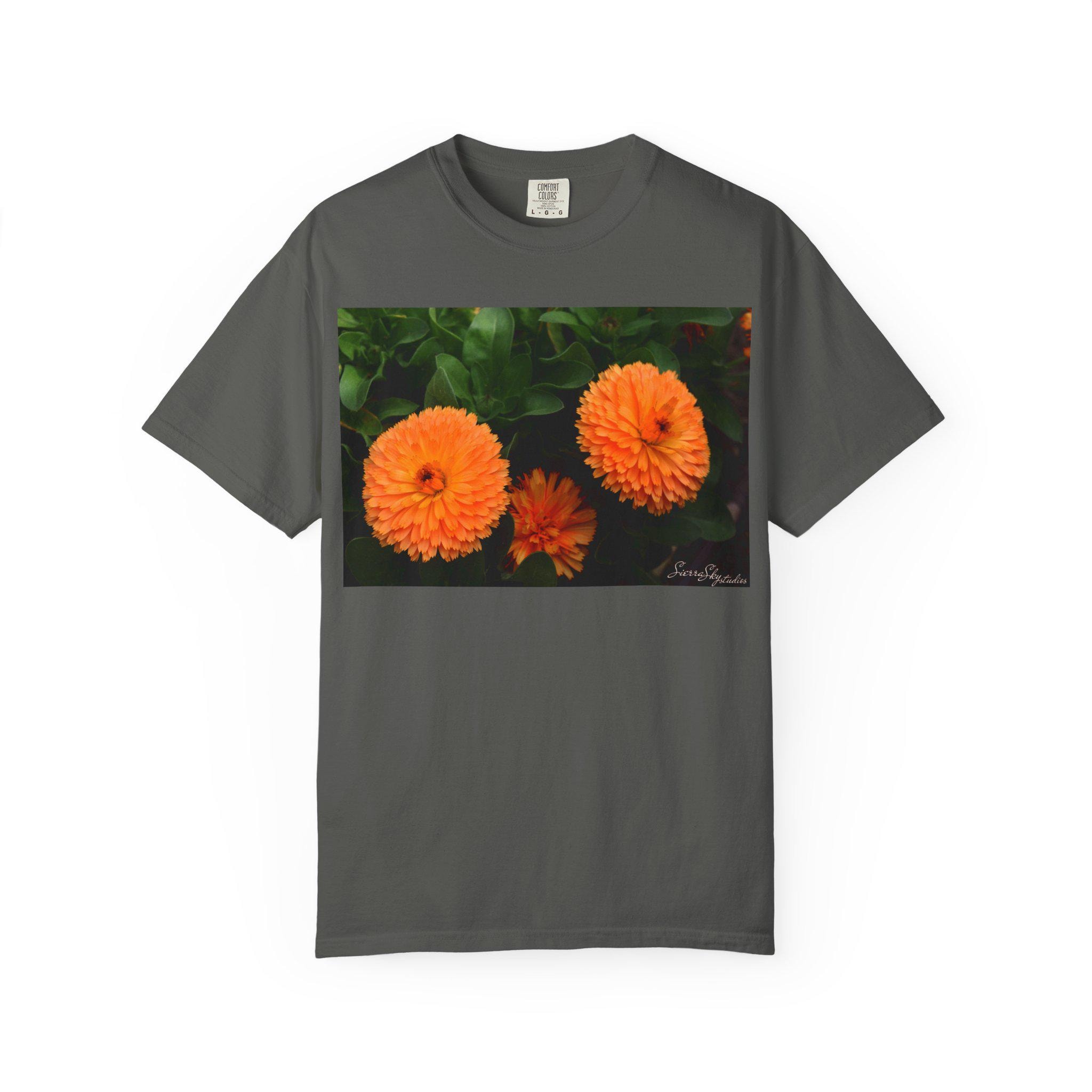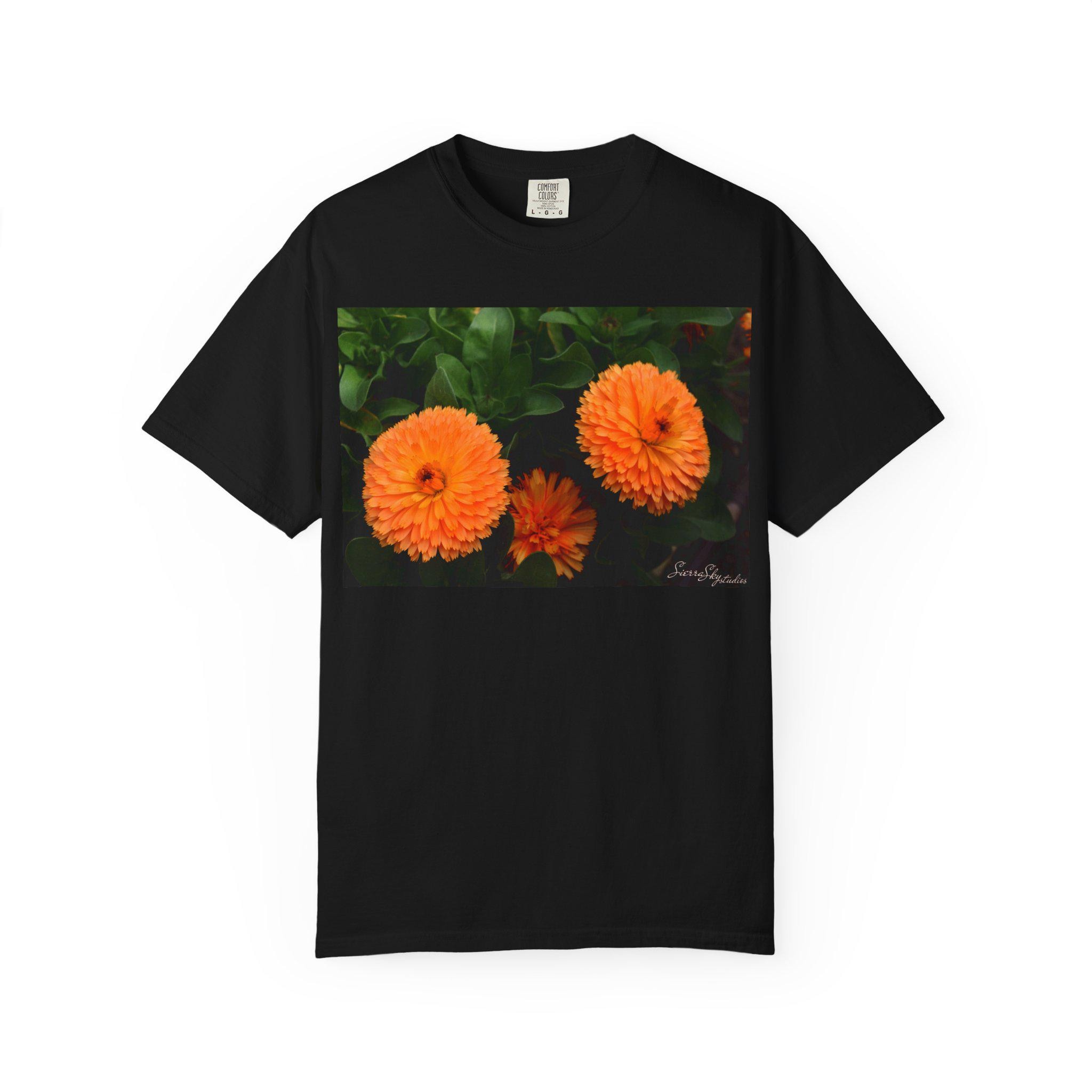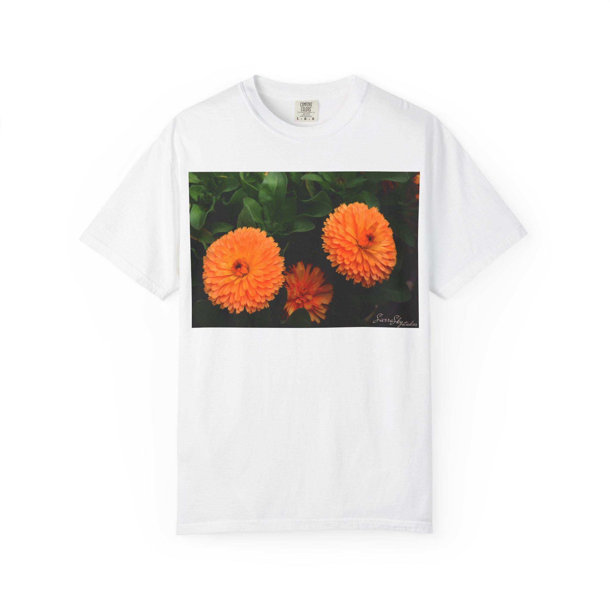 Orange Marigold Flowers T-Shirt | Floral Garden Photo Print