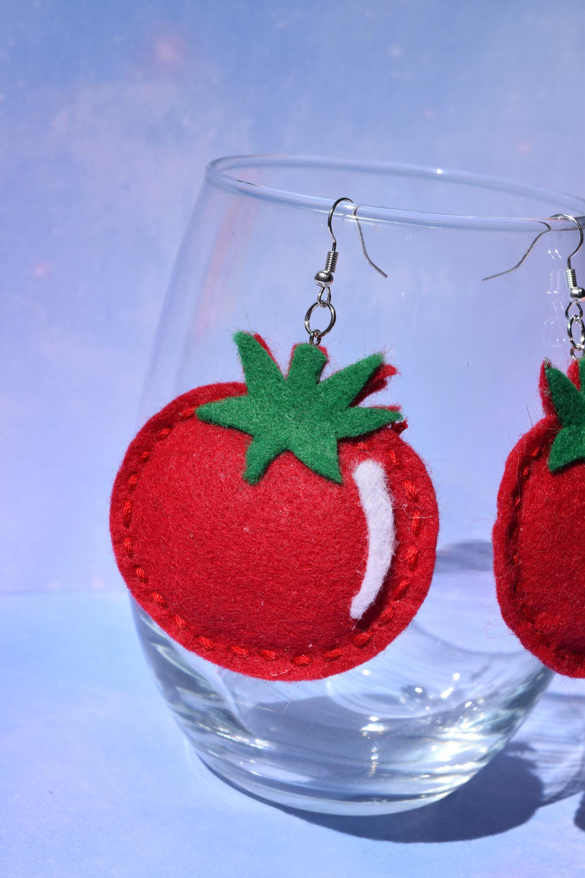 Plump Tomato Felt Earrings