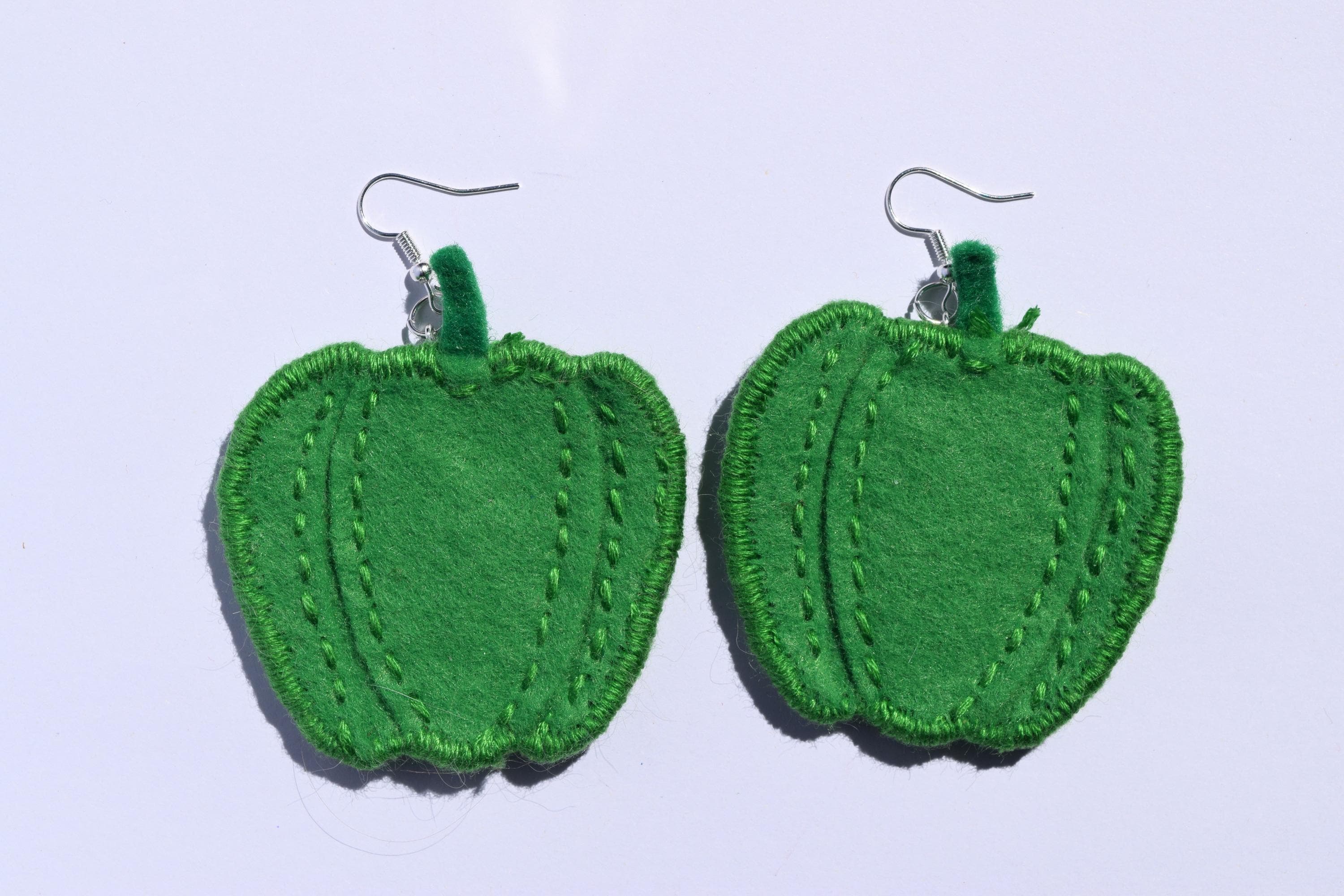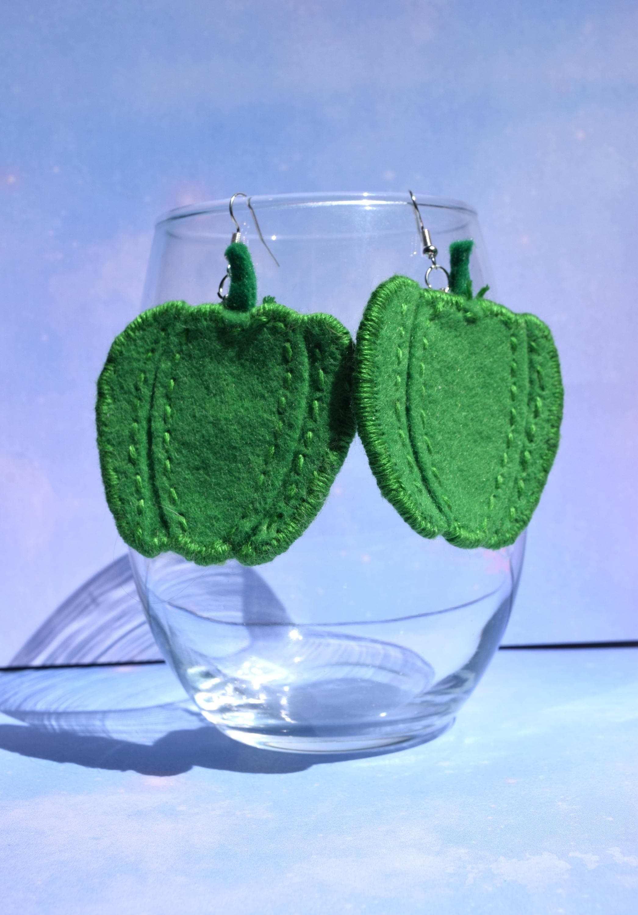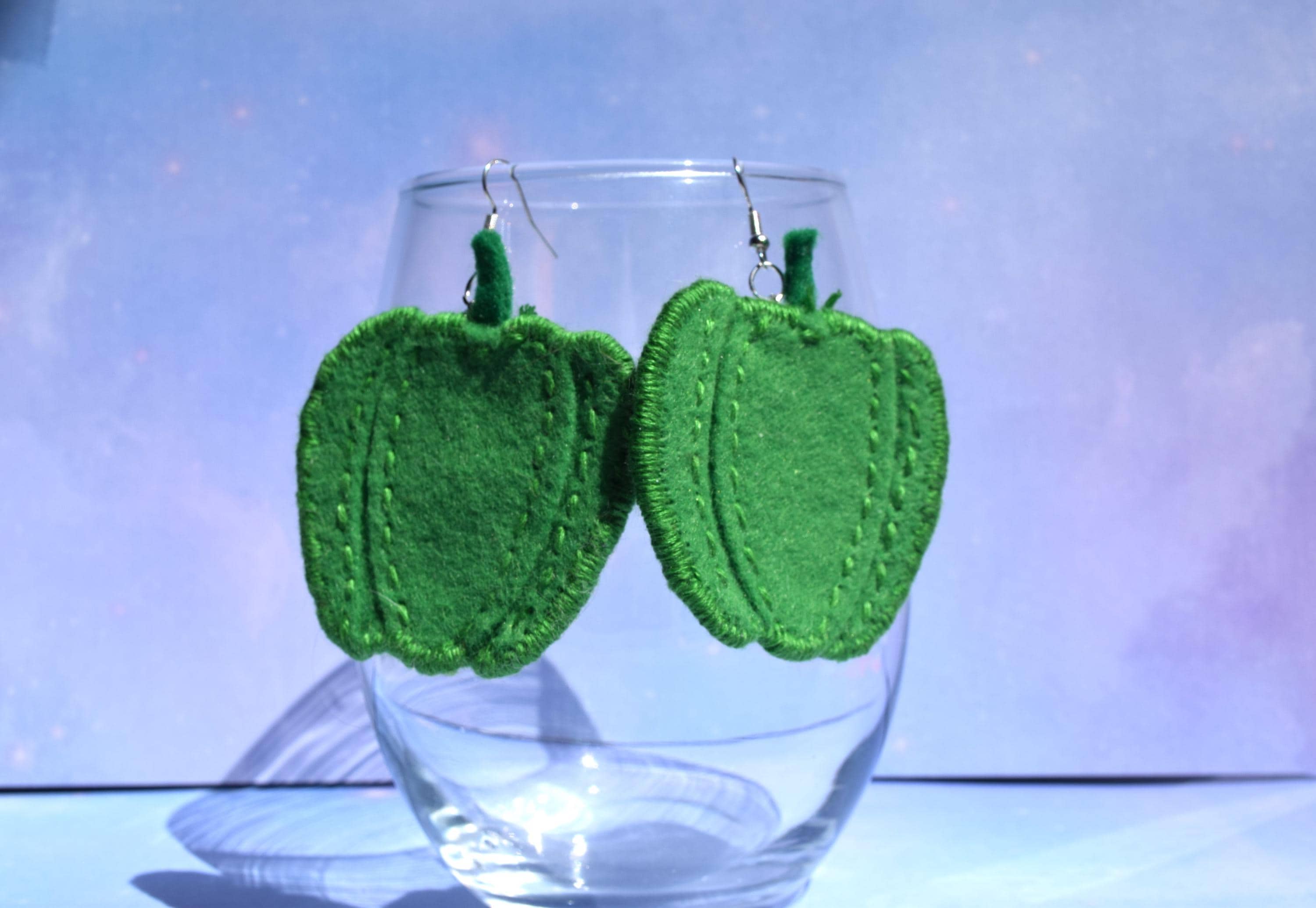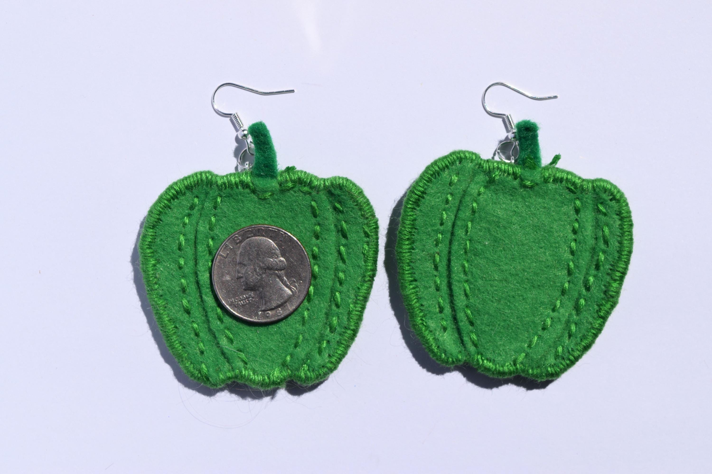 These adorable bell pepper felt earrings are made by me, Sierra Miller. *Note: These earrings are handmade, so they may look slightly different from the picture above.*
