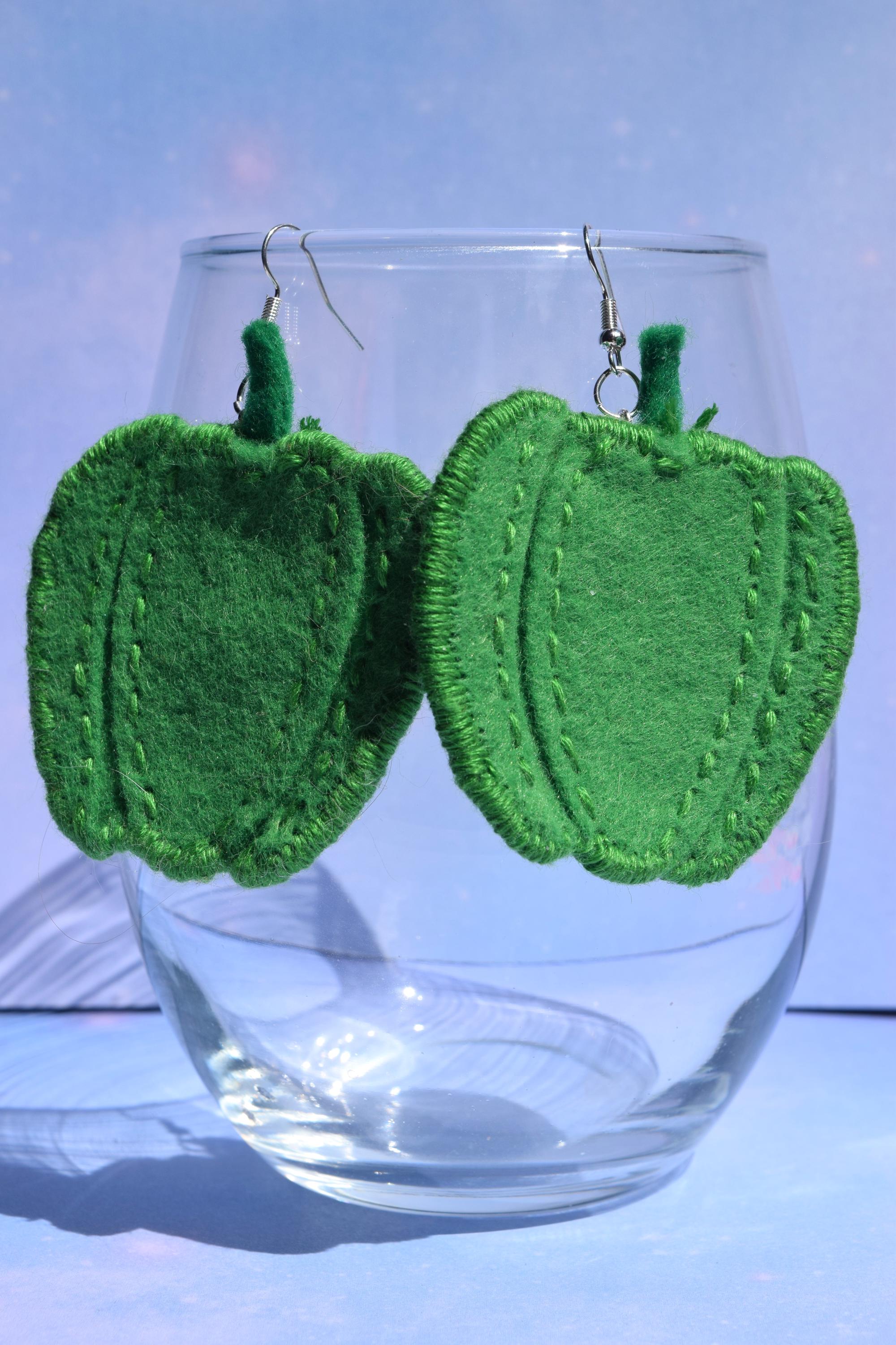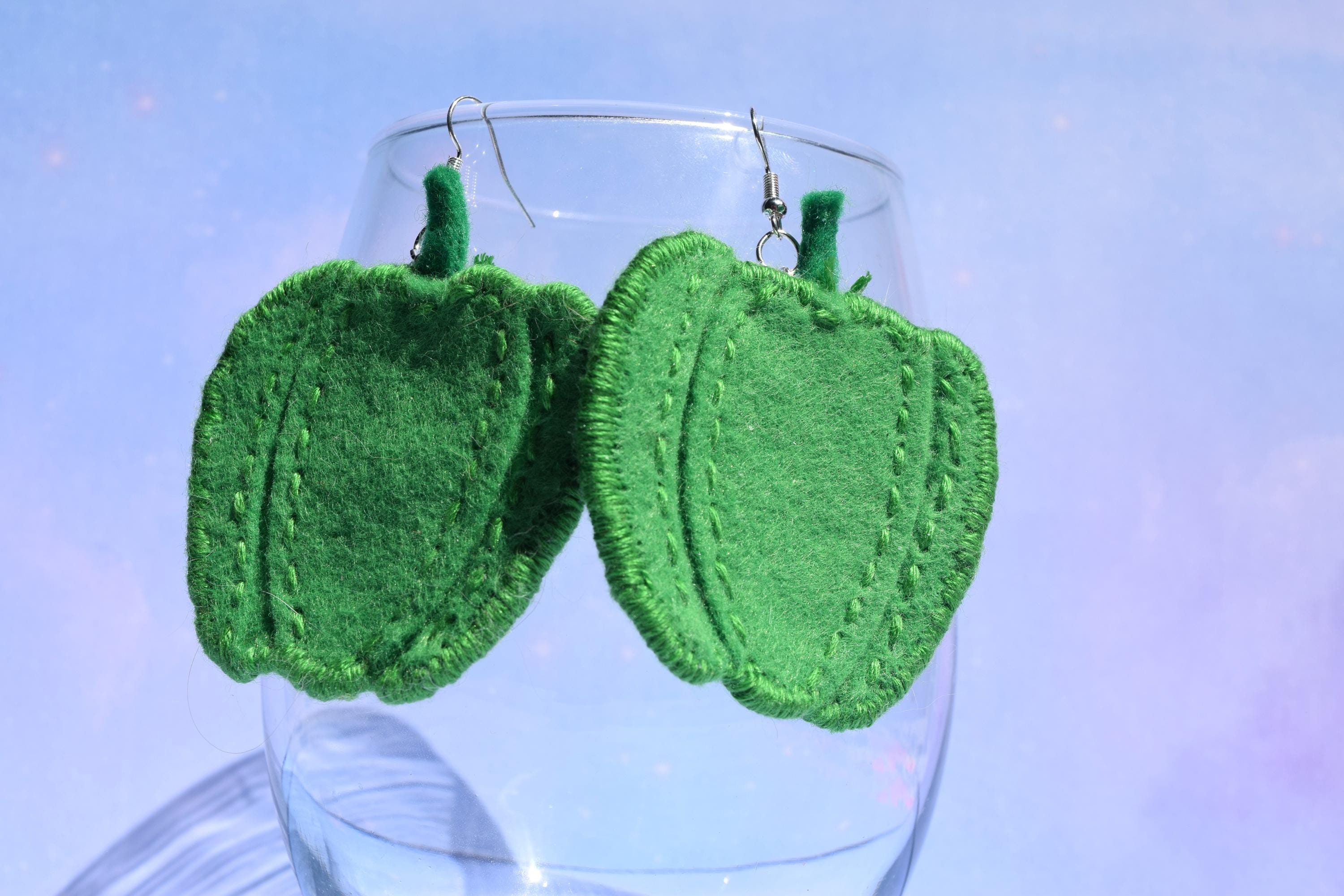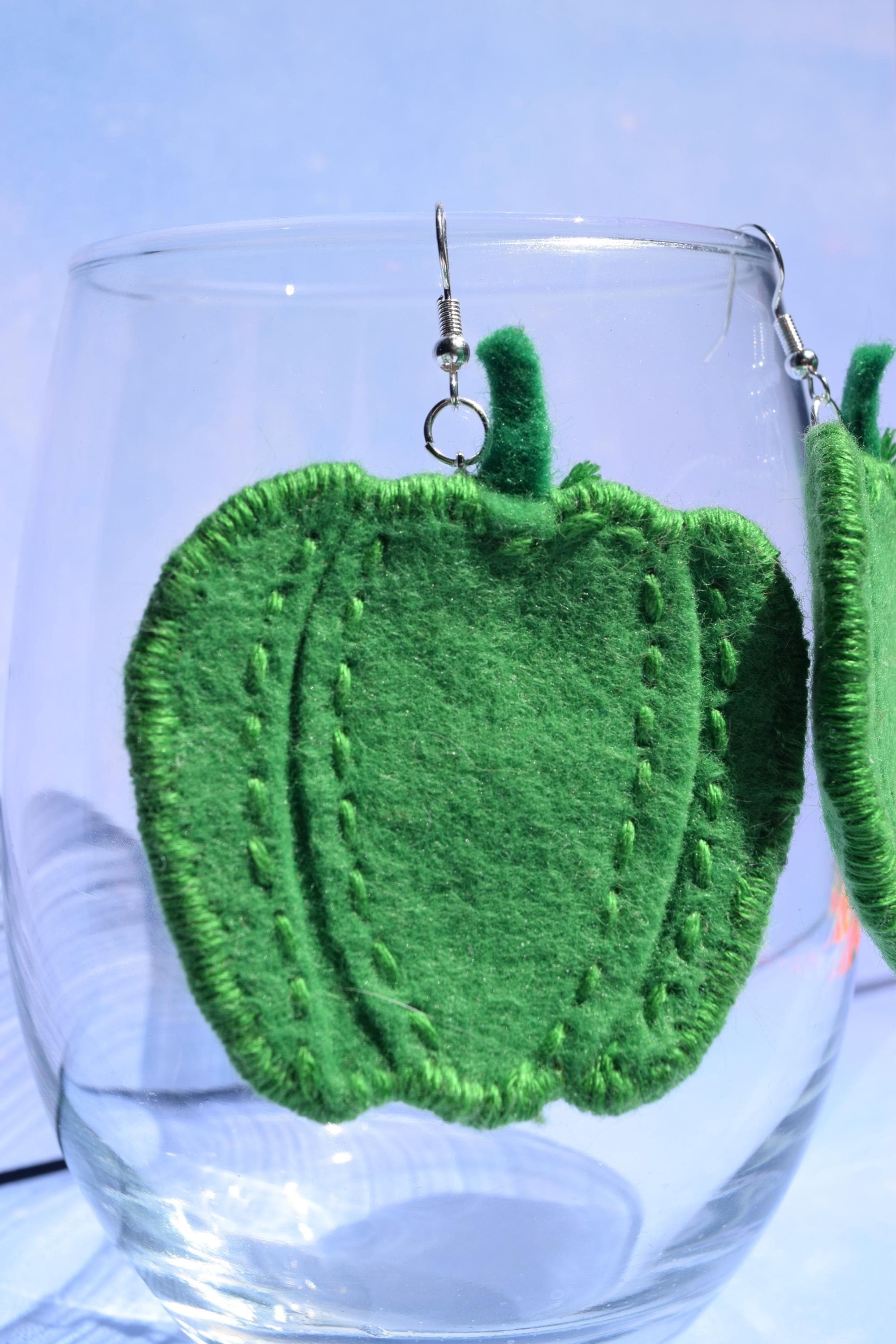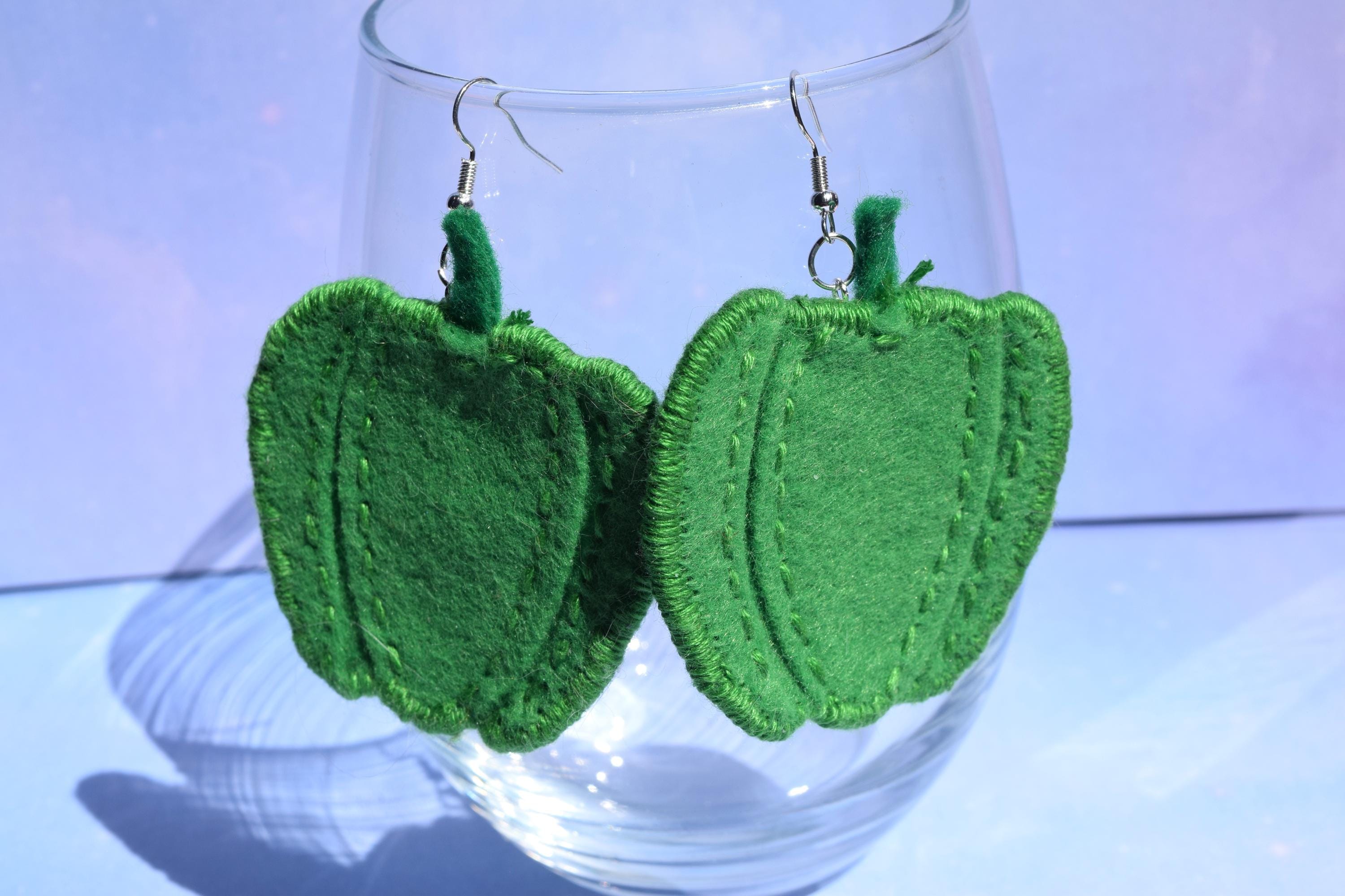 These adorable bell pepper felt earrings are made by me, Sierra Miller. *Note: These earrings are handmade, so they may look slightly different from the picture above.*